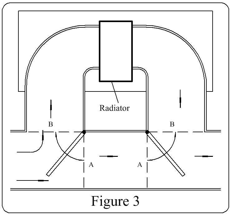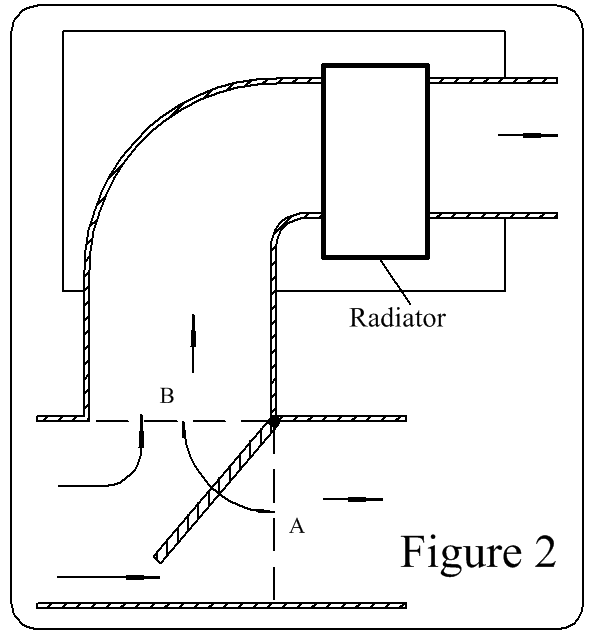 Ambient air is drawn through the radiator as in normal practice. From the radiator the air, instead of escaping to atmosphere as normal, enters a duct. In the duct is a valve which can take any position between its extents A & B. At A all the air is directed into the bag. At B, the air is vented to the atmosphere. Any position between A & B can can be selected to control the rate of ascent.