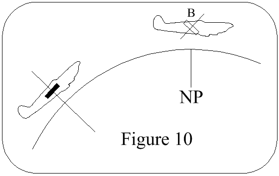 When the vehicle moves relative to the Earth further factors must be considered. In Figure 10 an aircraft is shown at A flying horizontal to the Earth's surface towards B, with the platform maintaining its position. When the aircraft arrives at B the platform has tilted back from the direction of flight because it has maintained its position relative to space. The plaform must therefore be rotated about the x axis at a rate equal to the aircraft's angular velocity about the Earth's curvature, ie NS groundspeed/Earth's radius.