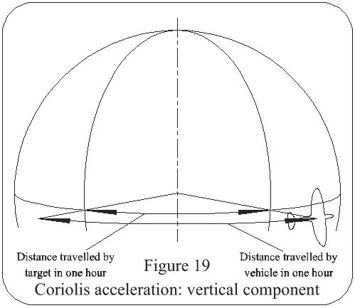 Vertical Component: Referring to Figure 19, the constant easterly deflection in either hemisphere acting on a vehicle is due to the earth's rotation. The amount of deflection is governed by altitude & latitude.
