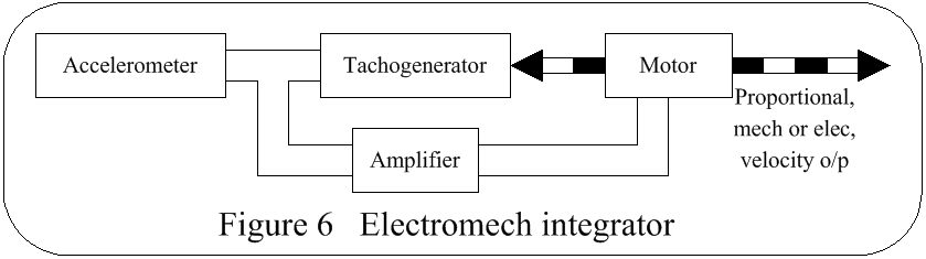 If acceleration is measured in terms of a dc o/p & fed to a motor driving a shaft, the total angular rotation would be proportional to velocity. If velocity were then measured in terms of a dc o/p & fed to a similar motor, the total angular rotation would be proportional to distance travelled.