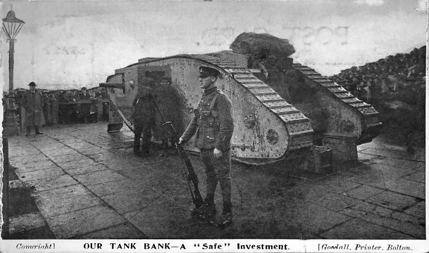 (Oh and just to head off more possible confusion, there does exist a picture of a tank outside Bolton town hall and it obviously isn't the same one. That's because it's the presentation tank given to Bolton after the war, not the tank bank one.)
